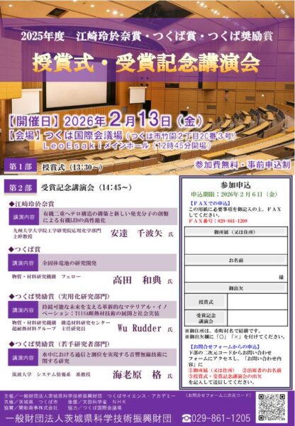 江崎玲於奈賞・つくば賞・つくば奨励賞 授賞式及び受賞記念講演会