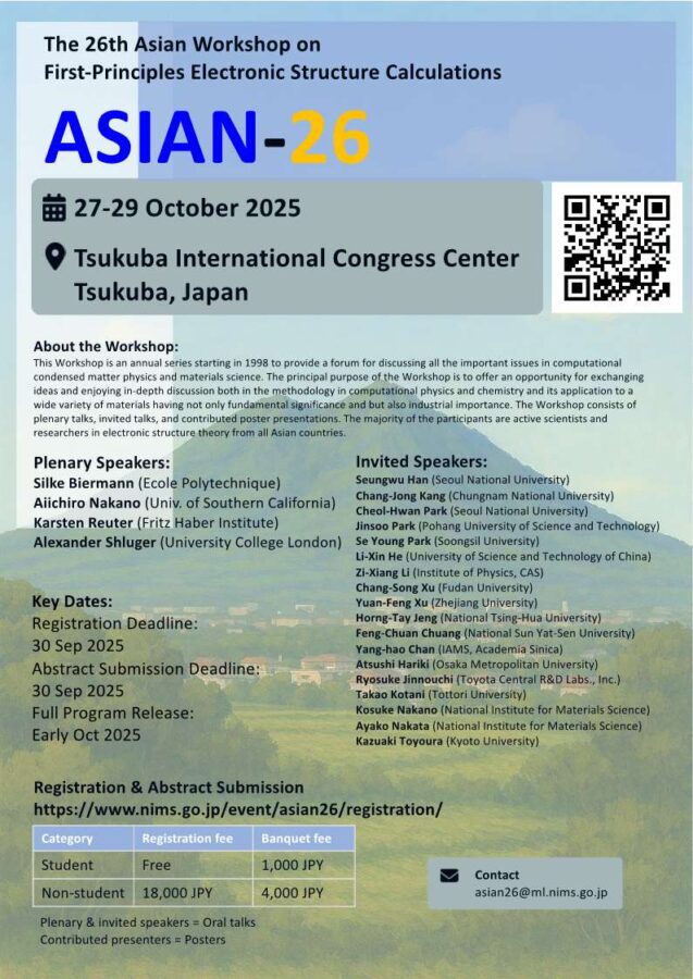 The 26th Asian Workshop on First-Principles Electronic Structure Calculations (ASIAN-26)